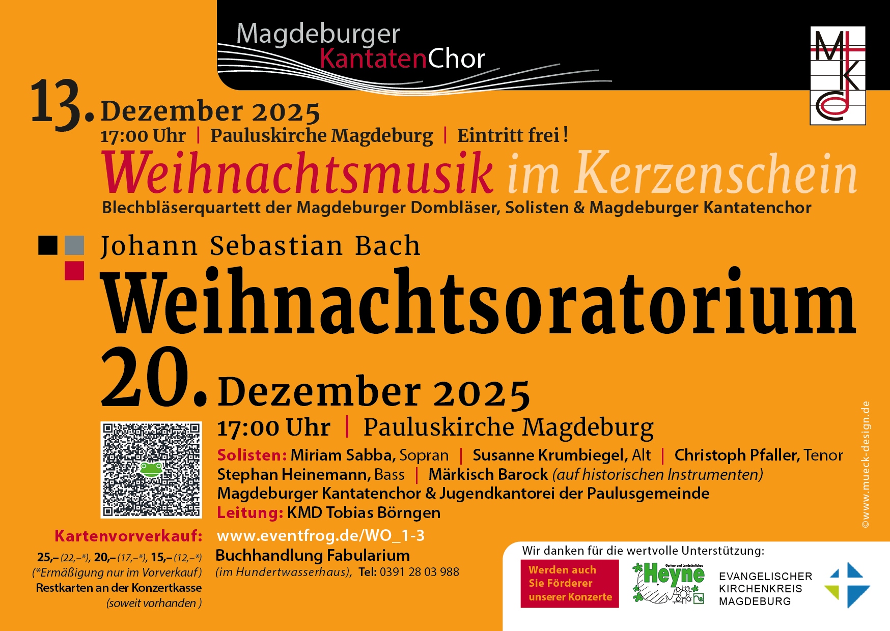 arten (25,- bis 15,- EUR) sind in der Buchhandlung Fabularium im Hundertwasserhaus und online über www.eventfrog.de/WO_1-3 erhältlich, Restkarten gibt es an der Konzertkasse. Lassen Sie sich dieses großartige Werk nicht entgehen!